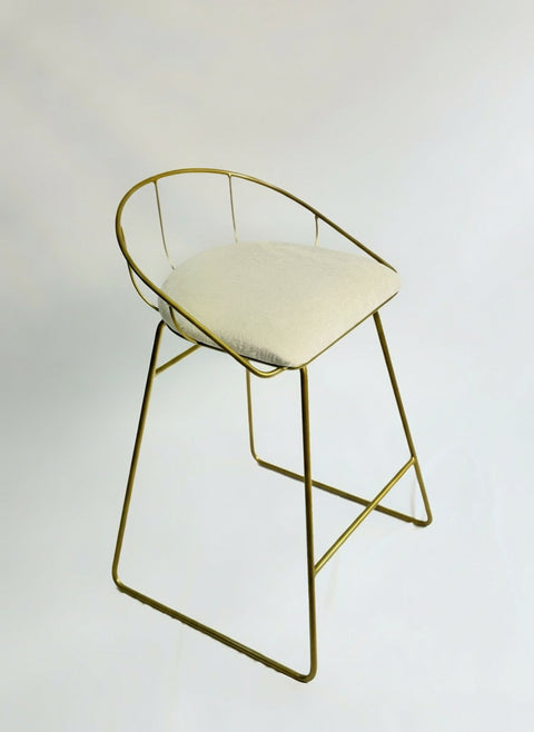 Silla de barra Asis tapizada con estructura de hierro y pintura electrostática. 65 cm alto x 47 cm ancho. Resistente y funcional para barras y mostradores.